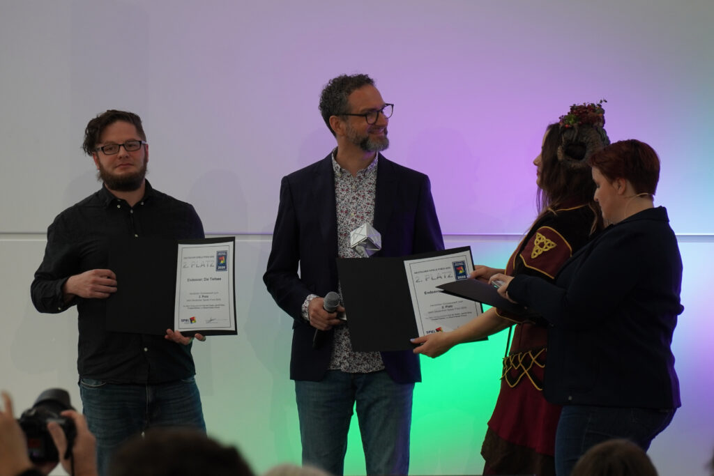 Im Rahmen der Pressekonferenz am Vortag der Messe wurden auch die Gewinner der ersten drei Plätze des Deutschen Spielepreises (DSP) 2025 bekanntgegeben. Abgestimmt haben hier nur Menschen aus der Brettspiel-Community, die ihren Lieblingsspielen des Jahres 2025 ihre Stimmen geben konnten. Leider ist nicht genau bekannt, wie viele Menschen sich an der Abstimmung beteiligt haben. Der Pressesprecher der Messe, Robin de Cleur, sprach aber in einem Interview auf der Messe von einer Zahl im oberen mittleren vierstelligen Bereich.