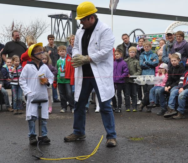 „…Schnell ist sie vergangen, die Projektwoche „KNuT-kommt“ an unserer Schule. Aber das ist auch kein Wunder, denn das Forscherteam unter der Leitung von Herrn Dr. Carsten Krause hatte für die Schülerinnen und Schüler ingesamt 98 Experimente vorbereitet, die die Kinder in unterschiedlichen Gruppen ausprobieren konnten. Langeweile konnte gar nicht aufkommen … Doch das Beste kam – wie es sich gehört – zum Schluss. Am darauffolgenden Samstag versammelte sich die Schulgemeinde in zwei unterschiedlichen Aufführungen für die XXL-Wissenschaftsshow. Hier hat jedes Kind seine Aufgabe und keiner der Eltern und geladenen Gäste konnte sich gemütlich zurücklehnen und schauen. Nein, alle machten mit … Vielleicht trug diese Erfahrung dazu bei, dass Eltern und Kinder wieder mehr den Fernseher oder den PC auslassen und selbst auf Forschertour gehen. Dass das viel spannender sein kann, haben an diesem Morgen mit Sicherheit alle erfahren…„
