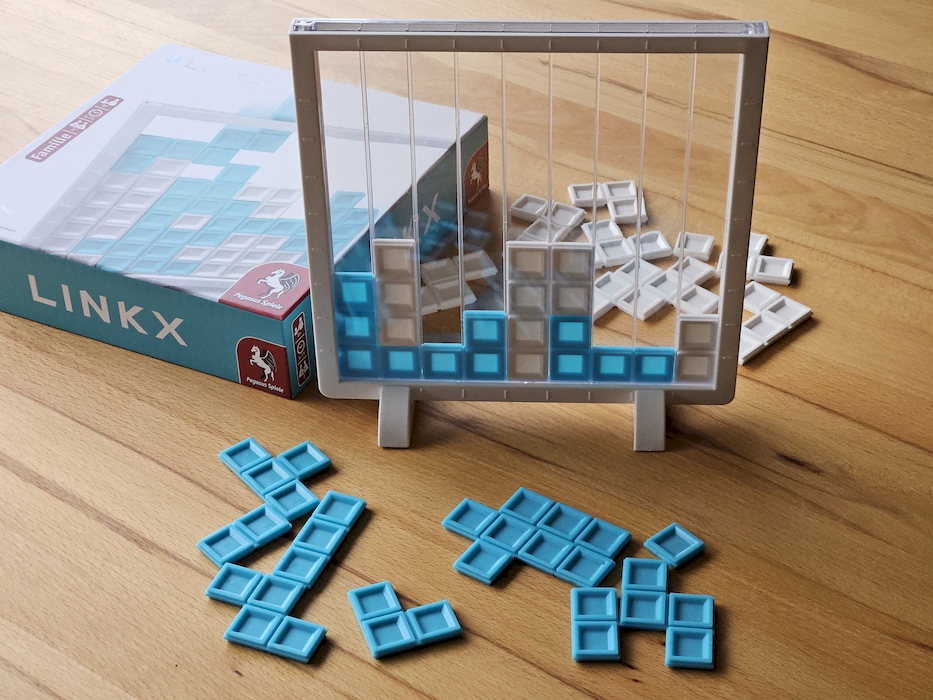 Das Spiel LINKX (Pegasus Spiele, Spieldesign: Robert E C Coleman) besitzt mit seiner senkrecht stehende Spielfläche und den tetris-artigen Spielsteine einen hohen Aufforderungscharakter. Bevor die Regeln erklärt werden können, versuchen die meisten Spielenden schon die Spielsteine von oben ins Raster fallen zu lassen.